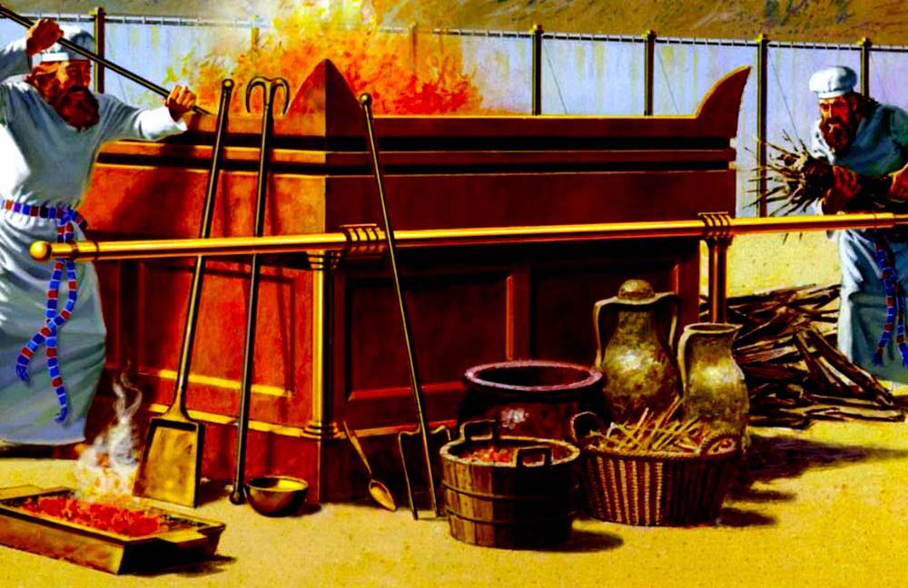 ძველაღთქმისეული ღვთისმსახურების წეს-განგების თანახმად, შიდა ეზოს სპილენძის სამსხვერპლოზე ისრაელის მღვდლებს უნდა დაეწვათ სხვადასხვა სახის პირუტყვი (რომლებიც იწოდებოდნენ მსხვერპლად "აღსავლენისთვის", "საძღვნოსთვის", "ცოდვისთვის", "დანაშაულისთვის", "ხელავსებისთვის" და "სამადლობელად" (ლევ. 7:37 და სხვა), ასევე "პურის შესაწირავი" (რომელსაც ემატებოდა "საძღვნო მარილი" (ლევ. 2:13) შეად. მკ. 9:49; კოლას. 4:6). ამასთან თვით ყოვლადდასაწველი სამსხვერპლოს სახელწოდება განპირობებული იყო ყოველდღიური შეწირვით, რომელსაც "ყოვლადდასაწველი მსხვერპლი" ეწოდებოდა და მთლიანად იწვებოდა. ეს იყო ორი კრავი, რომელთაგან ერთი სამსხვერპლოზე იდებოდა დილით, მეორე კი საღამოს (გამ. 29:38-43; 1 პარ. 16:40), ასევე ხორბლის ფქვილი, ზეთი და ღვინო (გამხ. 29:40-42) შეად. გამოცხ. 6:6).